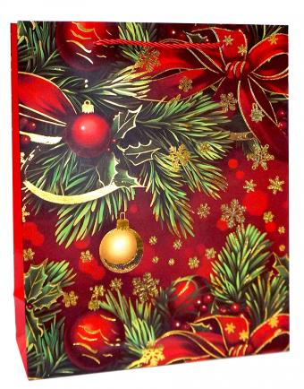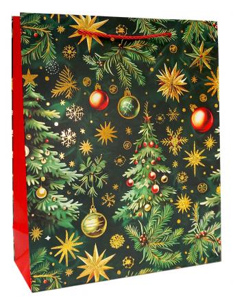 Бумажные новогодние подарочные пакеты из плотной матовой бумаги с золотым тиснением, серия "Праздничное настроение", размер 26*32*10 см.