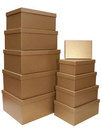 Набор из десяти прямоугольных подарочных коробок карамельного цвета, отделка фактурной матово-перламутровой дизайнерской бумагой, размер 37*28*17 см.